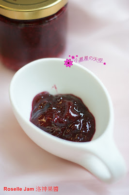 將做洛神汁撈出的花萼加入50%~100%的糖和5%的檸檬汁熬煮成果醬即可.